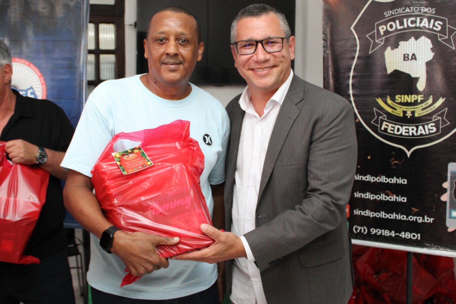 O evento também foi marcado por um gesto de cuidado e carinho por parte da ANSEF, do SINDIPOL, da ADPF e da APCF. Foram entregues Cestas Natalinas aos trabalhadores terceirizados e contratados como forma de reconhecimento e valorização desses profissionais que contribuem diariamente para o funcionamento da instituição.