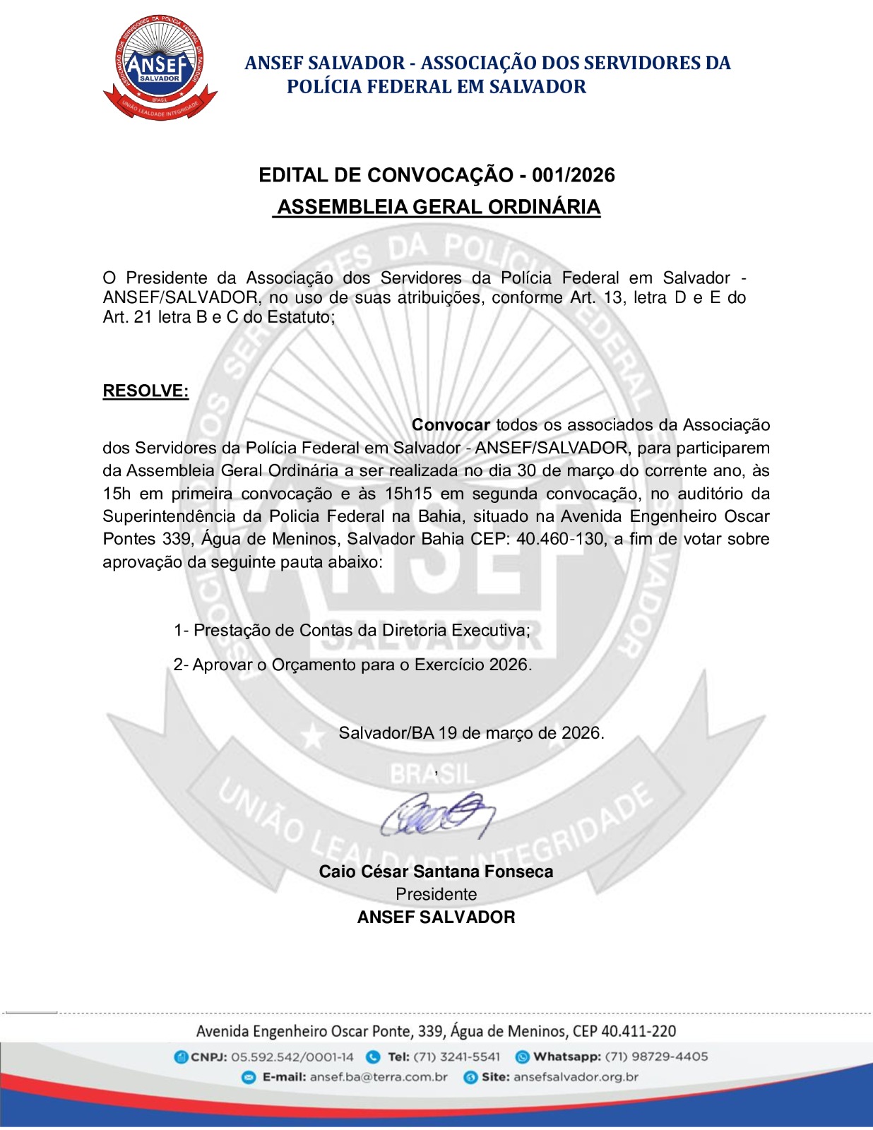 ASSEMBLEIA GERAL ORDINÁRIA
